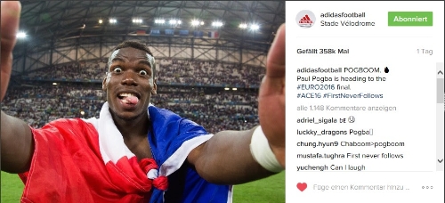 adidas ha focalizzato i suoi sforzi sulle consolidate partnership, facendo leva su short film, immagini e GIF relative a federazioni come Germania , Galles , Belgio e Spagna e a calciatori come Paul Pogba , Mesut Özil e Gareth Bale . Il brand ha avuto anche un approccio innovativo rispetto ai suoi diritti UEFA, avendo accesso a immagini delle partite, realizzando ritratti esclusivi dei giocatori post-match e utilizzando i LED board a bordo campo per stream di contenuti durante il torneo.
