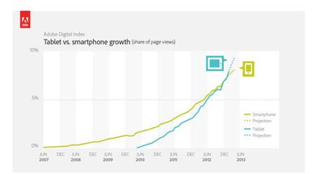 Come appare evidente anche dalle ultime novità presentate, molta l'attenzione riservata da Adobe ai tablet. Un mezzo sempre più diffuso che le aziende non possono più prescindere dall'includere nelle strategie di marketing digitale. Dall'ultimo Digital Index presentato da Adobe, dove sono contenute alcune ricerche effettuate dalla società sui dati raccolti periodicamente, emerge che per la prima volta i tablet hanno superato gli smartphone in merito a navigazione Internet: l'8% della navigazione avviene da tablet contro il 7% da smartphone e su tablet le page views sono 1,7 volte quelle da smartphone. Un'informazione che dà conto di quanto sia importante per le aziende garantire agli utenti una customer experience soddisfacente anche su questo medium.