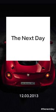 Dalla collaborazione fra Sony Music Italy e Alfa Romeo, come anticipato da ADVexpress, nasce un’innovativa campagna di marketing virale che si basa sulla diffusione online di immagini appartenenti all’ ‘italianità’ ma anche all’essere ‘mittleuropei’, metropolitani. Alfa Romeo ha messo a disposizione del progetto alcune immagini della 4C che saranno visibili a rotazione con altri soggetti su portali generalisti e siti musicali, oltre che sui social di Alfa Romeo. Inoltre, la campagna inviterà gli utenti a creare immagini che rappresentino il proprio concetto di “The Next Day”.