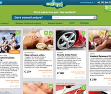 alfemminile.com (www.alfemminile.com) - il sito web dedicato al mondo femminile che conta oltre 5.000.000 di Utenti Unici mese e che rappresenta il Gruppo aufeminin nel nostro mercato - premia l’innovazione e l’intraprendenza di Weekend-a-GoGo, la startup italiana che cambia il modo di organizzare i nostri weekend fuoriporta.Weekend-a-GoGo è un “weekend hub”, ovvero un innovativo sistema distributivo di offerte di pacchetti vacanza brevi che si alimenta dall’interazione social tra gli utenti del servizio e i fornitori dei pacchetti turistici. È un progetto in evoluzione che consente di individuare il proprio pacchetto weekend preferito selezionando tra numerose opzioni e di condividere la propria esperienza e il proprio giudizio con gli altri utenti. Weekend-a-GoGo premia, infatti, l’attitudine social dei propri utenti: chi più acquista, condivide e consiglia, più risparmia grazie ai WAGG COIN, i buoni sconto che danno diritto fino all’80% di sconto su ciascuna prenotazione.