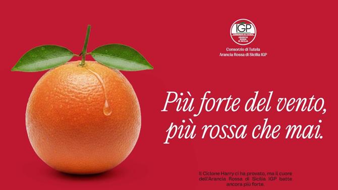 “Più forte del vento, più rossa che mai: il ciclone Harry ci ha provato, ma il cuore dell’Arancia Rossa di Sicilia IGP batte più forte che mai.” È questo il messaggio che accompagna l’immagine simbolo della campagna, realizzata dall’agenzia siciliana Fraom Design guidata da Francesco Santoro. Un' arancia rossa che lascia cadere una lacrima: un gesto semplice ma potente, che racconta la forza dei produttori e la loro capacità di rialzarsi.