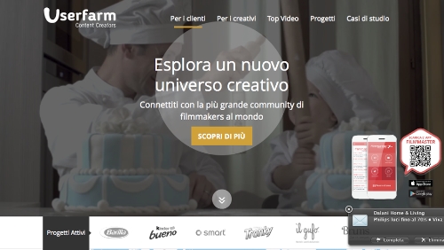Tra i progetti adesso online sulla piattaforma Userfarm ricordiamo: Barilla che chiama i filmmaker ad interpretare il nuovo posizionamento del brand a livello internazionale "Bravo to you", ideato dall'agenzia JWT; Smart che per festeggiare il 18° compleanno chiede alla crowd di preparare un “video party” collettivo; Tronki e Kinder Bueno, per i quali i filmmakers Millennials, che rappresentano oltre il 70%, hanno la possibilità di godersi il prodotto, interpretarlo, e restituire al cliente, oltre che contenuti video, anche il proprio feedback.