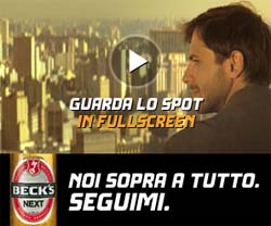 Dopo lo spot tv partito domenica 16 maggio sulle reti Mediaset, Sky, Mtv e Deejay, Beck’s Next approda sul web con una campagna di video banner che prevede, per la prima volta in Italia,l’utilizzo del formato 300x250 espandibile full screen, pianificato su Msn.it. Un formato innovativo che permette di vivere a pieno schermo l’emozione di un momento firmato Beck’s Next.