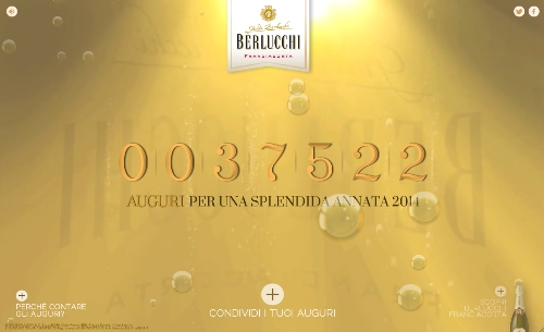 Questo Natale fare gli auguri conta ancora di più, perché a renderli 'spumeggianti' c'è il contatore di auguri Berlucchi. Ideato da OgilvyOne, il contatore raccoglie tutti i messaggi inviati su Twitter, che contengono hashtag inerenti alle festività. In questo modo la Guido Berlucchi riunisce il sentimento di un'intera nazione e diventa lo sponsor del brindisi italiano.