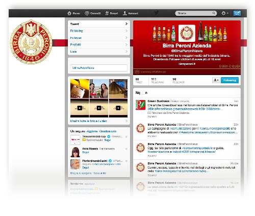 Birra Peroni approda su Twitter e Linkedin. Il brand apre nuove finestre sul web con l’obiettivo di condividere con la propria rete di relazioni - attraverso contenuti multimediali, video e photogallery - la sua storia e le attività che la vedono impegnata, in particolare, su tematiche di rilevanza sociale come il consumo responsabile, lo sviluppo sostenibile e il supporto alle comunità e all'economia locale.