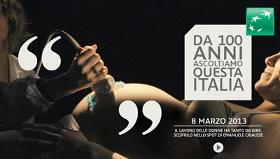In occasione della festa della donna, un sito vestito al femminile con una nuova versione da 30’’ dello spot girato da Emanuele Crialese con protagoniste le donne. All’interno del sito anche l’intervista a Gabriella Serravalle, Direttore Risorse Umane BNL, che fa un punto sulla situazione della donna in Italia e in BNL.