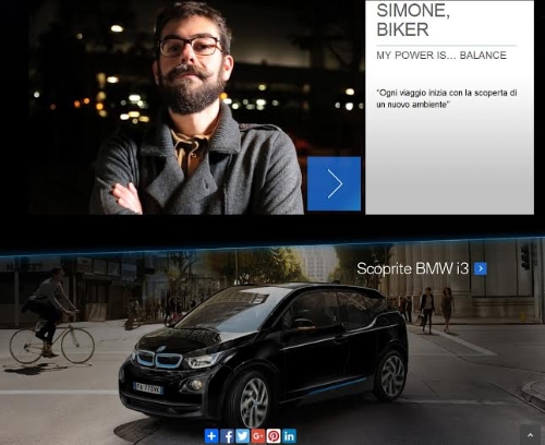 Il Progetto BMW i3 - My Power is…, online su www.ilsole24ore.com/st/ bmwi3ispower , mostra i plus di BMW i3- il piacere di guidare consapevolmente, il potere del silenzio, la connessione e il design del futuro -attraverso la voce dei suoi quattro protagonisti: il regista Fabio, secondo cui la sua macchina da presa è il modo di guardare avanti e guidare il suo futuro, il biker Simone che paragona l’esperienza della bicicletta alla guida di una BMW i3, Karo Baum designer di gioielli e Morris Uberti che con la sua start-up guarda il mondo della realtà aumentata con occhi diversi.