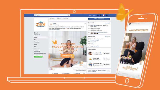 Infatti, #alcentopercento con Jill Cooper aiuta Zymil ad associarsi con ironia alla sfera del fitness e del benessere, riuscendo al contempo a trasmettere il messaggio di marca. Per ogni prodotto Zymil è stato creato un video tutorial in cui Jill Cooper presenta un esercizio che permette di sentirsi davvero al 100%. Inaspettatamente però, non si tratta di squat o flessioni, ma di semplici azioni legate al consumo dei diversi prodotti Zymil legati a uno stile di vita positivo.