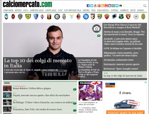 Calciomercato.com: il 2015 inizia con 5,5 milioni di utenti unici mensili. Bene anche la raccolta