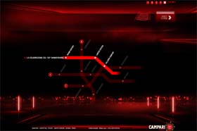 Attraverso l’esplorazione di 3 linee: la Red Line, la Communication Line e la Younique Line, l’utente scopre rispettivamente i valori e il mondo del brand, i commercial e il nuovo calendario Campari 2010 e, infine, vive un’esperienza unica e totalmente personalizzata attraverso l’utilizzo del mash-up dei dati del proprio profilo Facebook.
