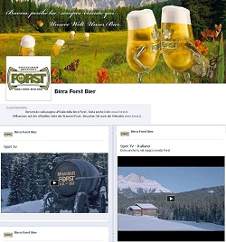 Inoltre sulla pagina trovano spazio gli abbinamenti cibo - birra, gli eventi e le manifestazioni a cui Forst da supporto e le campagne di comunicazione che trasportano il messaggio di alta qualità delle specialità birrarie del brand.
