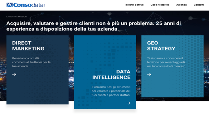 Pensato per essere completamente responsive ha l’obiettivo di garantire un facile accesso ai servizi offerti nelle tre aree di competenza: direct marketing, data Intelligence e geo strategy. Speciali approfondimenti sono inoltre dedicati alle case histories di rilievo.