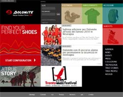 E' online da pochi giorni www.dolomite.it, il nuovo portale web realizzato dalla web agency di Claim|the creative box per lo storico marchio di scarponi da sci e outdoor del Gruppo Tecnica. Il sito è stato completamente trasformato, sia dal punto gestionale che grafico. Alle funzionalità standard, si affianca la possibilità di essere coinvolti in speciali contest e nella community.