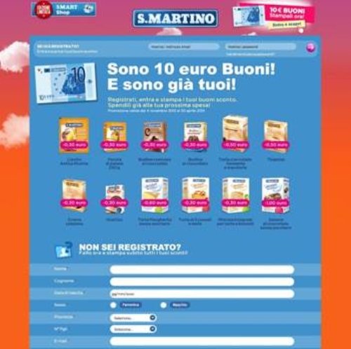 Tutto il progetto è stato sviluppato all’insegna della semplicità di fruizione: un semplice click sull’icona “10 euro buoni” all’interno di ilovesanmartino.it per scaricare, previa registrazione, i buoni sconti disponibili su 12 diverse referenze utilizzabili dai consumatori presso il proprio punto vendita di fiducia e cumulabili fino ad un risparmio massimo di 10 euro.