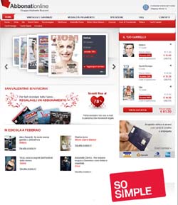 La web agency del gruppo So Simple si è occupata del restyling completo del sito (http://www.abbonationline.it) dedicato alla sottoscrizione degli abbonamenti alle riviste della casa editrice. Il cambiamento è totale sia per l'immagine grafica sia per la funzionalità, e pone le basi per ulteriori operazioni in ottica SEM (Search Engine Marketing) e Adwords su Google.