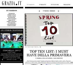Nasce oggi, 19 aprile, Grazia.it, il nuovo sito del settimanale Grazia. Grazia.it vuole essere un contenitore dinamico, interattivo, contemporaneo, ricco di novità e di voci che raccontano lo stile italiano e le ultime tendenze nella moda, nella bellezza femminile e nel lifestyle.Il nuovo portale del settimanale Mondadori è caratterizzato dal 'fattore It' che ha un doppio significato: 'it' come Italia, il Paese che influenza il mondo della moda, beauty e design. Ma 'it' è inteso anche come ‘alla moda’ e Grazia.it si propone come il sito di riferimento per le fashion addicted.