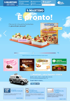 Dalla home e dal suo orario parte poi un viaggio che diventa differente e personale per ogni visitatore. Veniamo guidati alla scoperta di tentazioni dolci e salate, attraverso ricette, accostamenti e suggerimenti a cui non avevamo pensato (attraverso prodotti che non avevamo ancora scoperto). Possiamo trovare l'idea che cerchiamo semplicemente inserendo il nome di un prodotto o di un ingrediente che abbiamo in casa. Possiamo anche scoprire il posto più vicino dove acquistare il nostro prodotto S.Martino preferito. Possiamo scoprire, lasciarci ispirare, creare. Possiamo gridare forte ilovesanmartino! E magari scriverlo anche sul nostro browser. Provare per cedere (alla voglia di creare cose buone).