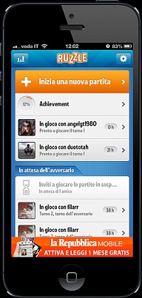 Ruzzle è sicuramente il gioco del momento: disponibile in 128 paesi nel mondo, il wordgame più scaricato negli AppStore di 50 paesi, il numero uno assoluto in molti App Store.Lumata, attiva a livello mondiale nel mobile marketing e advertising, a conferma della propria vocazione innovativa e attenta alle opportunità più interessanti del momento, ha inserito Ruzzle nel proprio network pubblicitario, offrendo così ai propri clienti la possibilità di effettuare campagne mirate di grande efficacia.