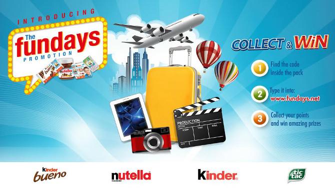 Dal 18 Settembre al 18 Gennaio 2017 tutti coloro che acquisteranno i prodotti Ferrero in promozione potranno creare un profilo personale sul sito www.fundays.net dove caricare i punti che si trovano all’interno di ogni confezione consumata. Un apposito catalogo online consente di redimere i punti così collezionati e scegliere il premio che piace di più.