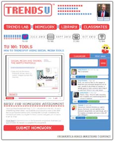 Il programma TrendsU offrirà ai dipendenti EuroRSCG in tutto il mondo un'esperienza di apprendimento interattivo, accessibile via l’intranet dell'agenzia o con iPad. Con TrendsU, i partecipanti non solo trarranno vantaggio dalle lezioni audio-visive costruite su misura, ma avranno anche la possibilità di comunicare con il loro professore e con i colleghi attraverso un sistema di messaggistica dinamico. Il sistema di messaggistica consentirà a tutti i partecipanti di discutere di argomenti importanti in tempo reale, favorendo un dialogo che andrà ad arricchire e approfondire le lezioni e le idee presentate.