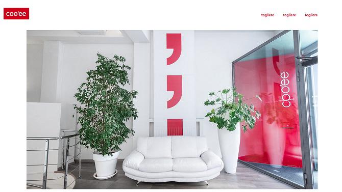 Il rinnovamento di Coo’ee non si ferma, ma utilizza ogni occasione utile per promuovere la sua creatività. Per il lancio ufficiale del nuovo sito l’agenzia di Mauro Miglioranzi ha ideato un pesce d’aprile distintivo e provocatorio. Il progetto consiste nell’imbastire una finta landing page e promuovere un’ipotetica svendita di tutti i divani dell’ufficio, come se si trattasse di un "fuori tutto" tipico di uno show room d’arredamenti. Il nuovo sito Coo’ee ha un format grafico contemporaneo e un design moderno, coerente con l’identità aziendale e basato sul valore di semplicità che comunica con il claim "togliere, togliere, togliere".