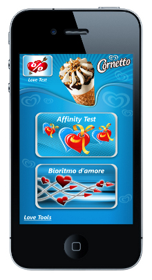 Tutta l’emozione del primo amore e la spontaneità dei sentimenti nell’applicazione creata da A-Tono per supportare la fase di lancio del nuovo Cornetto Double Love Algida, uno speciale bi-pack in edizione limitata con il Cornetto Classico e la novità Love Cocco in omaggio. Proprio in occasione dell’uscita di Double Love a marzo, l’azienda ha messo a punto una strategia multicanale che utilizza sia il mobile sia il web: “Double Love App”, questo il nome dell’applicazione fruibile su iPhone, Java e Android, oltre che dal sito www.cornettoalgida.it e dalla pagina Cornetto Algida su Facebook.Partendo dalla brand essence di Cornetto, “The ice cream expression of Love”, A-Tono ha realizzato un’applicazione mobile che declina l’universo valoriale del brand nella vita reale. Grazie al suo “cuore di panna”, Cornetto invita ora ad aprire il proprio senza timore e a gustare insieme al partner - di fatto o potenziale - un Cornetto Algida, scegliendo dalla confezione doppia uno dei due gusti: il Classico o il nuovo Love Cocco. Come? Con la “Double Love App”, un set di strumenti che aiuti e invogli i fan di Cornetto a svelare i propri sentimenti e a rompere il ghiaccio.