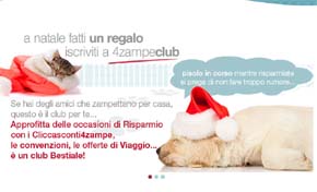 L'iniziativa è un club online interamente dedicato agli animali da compagnia con approfondimenti sui temi più interessanti e informazioni utili per la loro cura e il loro benessere suddivise in quattro sezioni: Cane e Gatto, Roditori e Uccellini, Tartarughe e Rettili, Tartarughe d’acqua e Acquari. Gli aderenti all’iClub 4Zampe potranno partecipare a concorsi e usufruire di convezioni e idee viaggio dedicate a chi possiede un animale.