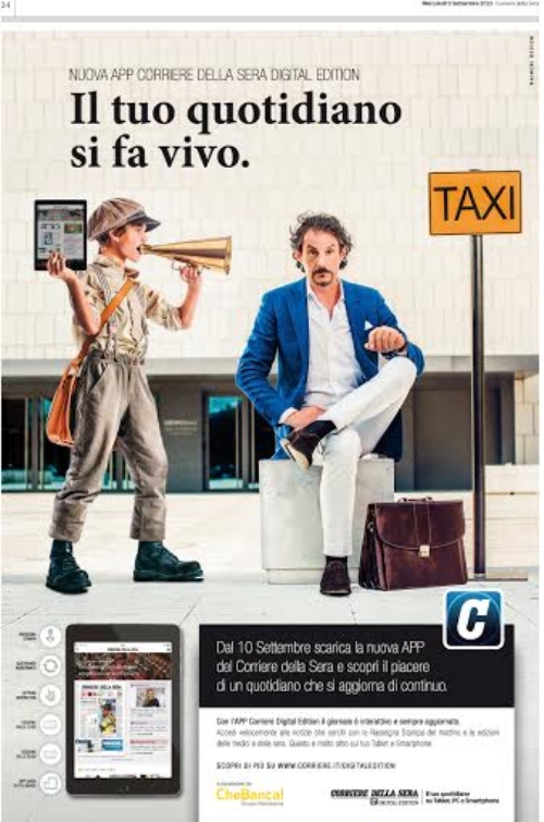 Il lancio della nuova Digital Edition del Corriere della Sera vede la partecipazione in qualità di sponsor di CheBanca!, la campagna di comunicazione è stata affidata a Raineri Design.