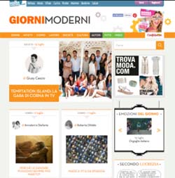 È online Giorni Moderni, il nuovo blogazine di Donna Moderna con cui si completa l'offerta editoriale del settimanale e del suo sito donnamoderna.com.Giorni Moderni nasce con lo scopo di raccontare tempestivamente e in modo innovativo i fatti di attualità con 6/8 aggiornamenti quotidiani: non notizie fini a se stesse, ma rilievo alle persone e alle storie che sono dietro ai fatti, le opinioni e i dibattiti che essi scatenano. Giorni Moderni racconta storie per raccogliere le storie dei lettori; esprime opinioni per ricevere le opinioni degli utenti e aprire il confronto con loro.