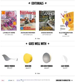 Le schede prodotto offrono una visione completa del singolo item proponendo le varianti colore, visualizzazioni 2D e 3D, informazioni sul montaggio, suggerimenti per abbinare i prodotti tra loro, foto ambientate pensate non solo per invogliare l’utente all’acquisto ma anche per ispirarlo nell’arredare i suoi spazi casa. Ogni prodotto è inoltre referenziato dagli editorials, ovvero le uscite redazionali sulle più importanti riviste del mondo del design internazionale.