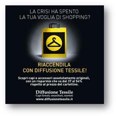 LiveXtension, agenzia di marketing e comunicazione, ha firmato in collaborazione con la modenese Bipiuci, storica agenzia di comunicazione di Diffusione Tessile, la prima importante campagna web dell’outlet del gruppo Max Mara. Obiettivi della campagna sono stati: rinforzare il messaggio “Diffusione Tessile riaccende la tua voglia di shopping”, già declinato con successo da Bipiuci sul territorio e nei punti vendita; lanciare ulteriormente l’e- commerce www.diffusionetessile.it, uno dei primi e-shopping in Italia nel settore della moda e dell’abbigliamento; far crescere la comunità di fan Facebook del brand.La campagna - online da fine marzo a inizio giugno- si è basata su un mix di soluzioni di branding (pre-roll su LeiWeb, banner su Corriere.it, video su Facebook) e di direct response (marketplace ads su Facebook, 4W PPN, Google Search e Display, DEM con Zanox mirate alla raccolta di utenti registrati). In parallelo con l’inizio della campagna, LiveXtension e Bipiuci hanno iniziato a gestire in modo nuovo e strutturato la pagina Facebook e il profilo Twitter di Diffusione Tessile, integrando soluzioni innovative come Facebook Luoghi (per tutti i punti vendita) e Pinterest (per le immagini più belle dei capi di abbigliamento proposti nei punti vendita e online).