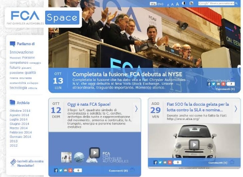 Mentre atteso il debutto ufficiale di FCA alla Borsa di Milano e New York, DGT Media, l’agenzia digitale di ItaliaBrandGroup , ha portato online il nuovo sito istituzionale dedicato alla nascente multinazionale italo-americana in stretta collaborazione con il team della Direzione Comunicazione del Gruppo FIAT S.p.A.