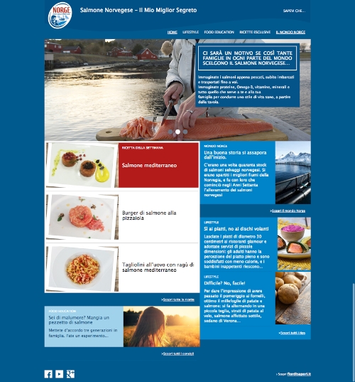 Il progetto si rivolge a un target specifico: donne 30-49 anni che amano la cucina, prestano attenzione all’alimentazione sana e al modo di presentare e condividere piatti originali e gustosi, le cosiddette “lifestyle addicted”. Per stimolare il target all’acquisto del salmone norvegese, HiMedia ha ideato un minisito selfstanding in cui la tradizione culinaria norvegese si sposa perfettamente con quella mediterranea.