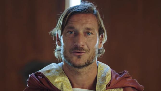 Francesco Totti nei panni di Santo Pupone nello spot web della serie Fox 'Romolo+Giuly: la guerra mondiale italiana'