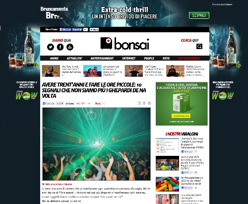 Gli anni sembrano non passare mai per Bonsai.tv, web magazine firmato YAM112003 e storico protagonista dei circuiti ‘young/adult’ ed ‘entertainment’ di tg|adv. A giugno la guida all'intrattenimento visto attraverso la lente dissacrante del web segna ancora un grande successo di visite e condivisioni, anche grazie a due post che hanno fatto registrare il 314% di visualizzazioni in più rispetto allo stesso periodo del mese precedente.