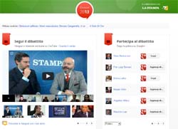 - 'Segui il dibattito': ospita i video, le interviste e le notizie relative alla campagna elettorale estratti dal TG e dai programmi di approfondimento di La7 e gli hangout in diretta con i protagonisti della scena politica realizzati da La7 e La Stampa;