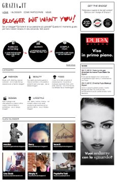 Grazia.it è alla ricerca di nuovi blogger per il network ‘It Blogs’. Gli It Bloggers, trend setter che amano lo stile italiano, sono chiamati a partecipare alla selezione per essere protagonisti del sito, punto di riferimento per le addicted di fashion, beauty e stile. Gli utenti di Grazia.it potranno votare fin da subito il proprio candidato preferito - tra i fashion, beauty, lifestyle, food, design e wedding blogger - : ai più votati verrà assegnato il badge specifico ‘most loved’. Coloro che vogliono entrare a far parte di It Blogs devono scrivere un post, che racconta qualcosa di sé e dei propri interessi. Successivamente dovranno ‘linkare’ il canale tematico di