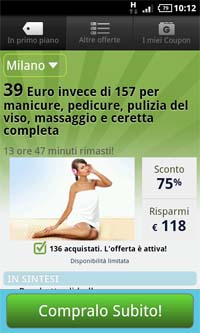 - Visionare i deal giornalieri: scegliere le offerte presenti in tutte le città italiane e procedere all’acquisto a partire dal proprio dispositivo;