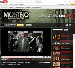 La trasmissione alle 23 di oggi (ovvero al termine della messa in onda televisiva su FoxCrime), del primo episodio de 'Il mostro di Firenze' è l’evento inaugurale di questa collaborazione e del nuovo canale YouTube di Fox Channels Italy, sul quale saranno inoltre reperibili altri contenuti scelti tra l’offerta dei canali di intrattenimento proposti agli abbonati Sky da Fox International Channels (FOX, FoxLife, Fox Crime, FX, FoxRetro). Sul canale youtube.com/foxtv, verranno quindi proposti, in forma di brevi clip, tra gli altri, contenuti di Boris e 80° Minuto, SOS Tata, The Listener, Il mio amico Arnold, Charlie's Angels, Love Boat, True Blood, 24, Csi e molti altri.
