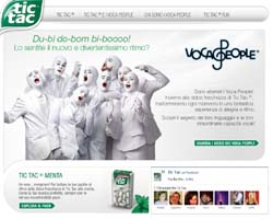 Tic Tac ha scelto la 360 agency per veicolare sul digitale il nuovo posizionamento e valorizzare l’associazione con il nuovo testimonial, originale show band vocale. Il progetto di comunicazione è crossplatform: si articola innanzitutto nella creazione e gestione delle official fan page di Facebook Tic Tac Italia e Voca People Italia, prevista poi una campagna di advertising online.