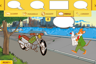 Tutta l’interfaccia grafica è legata al mondo “formaggioso” di Geronimo Stilton: colorata, impattante, giocosa.