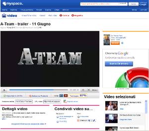 A partire da oggi, lunedì 22 febbraio sarà accessibile agli utenti il trailer italiano del nuovo film della 20th Century Fox tratto dalla nota serie televisiva degli anni Ottanta e in arrivo nelle sale cinematografiche italiane il prossimo 11 giugno. MySpace non esclude la possibilità che le iniziative nel sito per il lancio di A-Team si possano estendere ad altri contenuti e progetti.