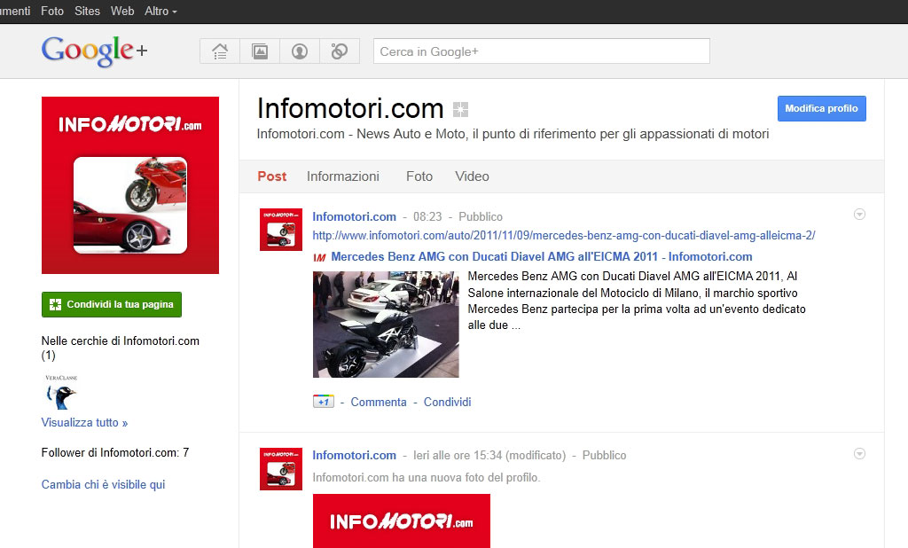 Infomotori.com arriva a 100.000 fans su Facebook e si lancia su Google+