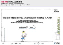 Per coinvolgere attivamente questo target è stato ideato un mini gioco interattivo che fa leva sull’importanza dello studio, ma soprattutto sull’organizzazione delle giornate. Gli studenti non possono spassarsela tutto il tempo. Prima di una festa, i libri vanno letti e le camere da letto riordinate. È questo il messaggio che Red Bull lancia con chiarezza e convinzione: grazie a Red Bull, l’energy drink che mette le ali anche agli studenti, tutto sarà più facile e veloce. Aiuta, infatti, a sconfiggere i libri e uscire in tempo dalla biblioteca per raggiungere gli amici alla festa.