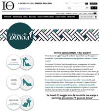 Contestualmente IO donna celebra tutte le donne con il concorso ‘A passo di donna’, on line su iodonna.it o attraverso l’omonima Web App scaricabile gratuitamente dal sito. Chi parteciperà avrà la possibilità di veder diventare la propria storia protagonista di un servizio fotografico realizzato dalla redazione moda del settimanale e di vincere abbonamenti digitali annuali della testata e, naturalmente, meravigliose scarpe.