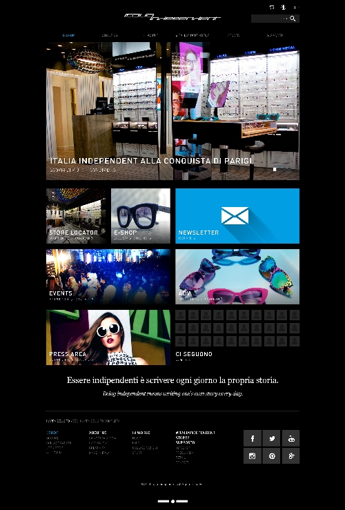 Italia Independent consolida la propria presenza online lanciando un nuovo sito e relativa piattaforma e-commerce. Il concept stilistico è stato sviluppato da Independent Ideas, la factory creativa di Italia Independent Group, mentre a Zerogrey, multinazionale irlandese specializzata nella gestione di negozi virtuali per brand appartenenti ai settori della moda e del lusso, è stato affidato il compito di realizzare il motore del portale, e di renderlo performante.