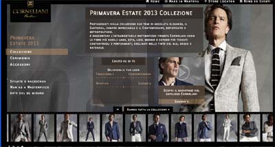 Ma la qualità Corneliani da sempre esalta e fonde insieme passione e matematica, idee e tecnologia, ago e computer. Per sottolineare questi connubi, ancora in partnership con JWT Italia, da gennaio Corneliani è online con il nuovo sito www.corneliani.com: completo ed elegante, consente di conoscere tutte le novità del brand, le sfilate, le collezioni e tutti i segreti del prestigioso brand, baluardo del made in Italy e della sartoria su misura.