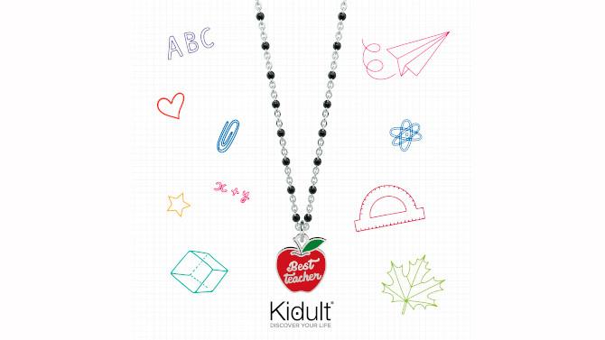I visual celebrano le nuove creazioni Kidult tra cui spiccano i bracciali e le collane con il ciondolo a forma di mela rossa e i gioielli con charms a forma di matita. Tra le proposte anche una serie di prodotti con frasi che sottolineano il ruolo fondamentale degli insegnanti nella vita di ciascuno.