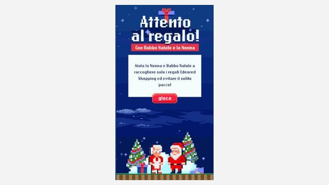 Due gli avatar che si possono scegliere per iniziare il gioco: Babbo Natale, stanco di portare tutti i regali pesanti e scontati e la ‘’Nonna saggia’’ che sa che a Natale è sempre bene lasciar scegliere il regalo. Una volta scelto e premuto il pulsante start, l’advergame catapulta l’utente in un ambiente natalizio dove cadono dal cielo sia dei pacchi grigi, che sono da schivare, sia icone super colorate che rappresentano i regali che si possono scegliere con i buoni acquisto Edenred Shopping e che, raccogliendole facendo tap sullo schermo, permettono al giocatore di far salire il proprio punteggio alle stelle e guadagnare extra tempo. Obiettivo del gioco è ottenere il massimo punteggio. Un progetto pensato per un grande divertimento, che insieme a una storia coinvolgente e grafiche e progettazione di alta qualità, ha tutti i numeri per essere il tormentone del Natale.