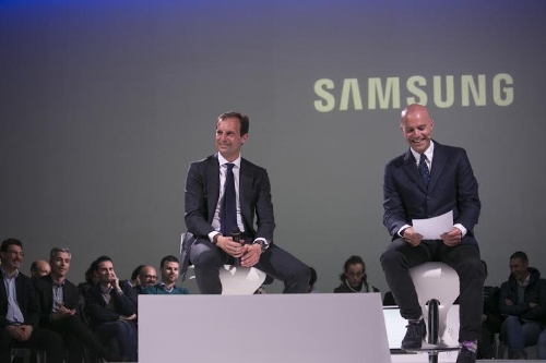 un divertente effetto sorpresa, il mister Massimiliano Allegri svela che a supportarli in squadra saranno le ultime innovazioni Samsung, rispettivamente lo smartphone dallo schermo laterale Galaxy S6 edge, i nuovi TV SUHD dal design curvo e l’efficace lavatrice Crystal Blue.